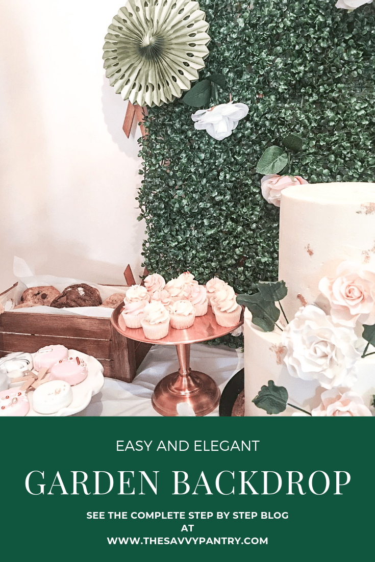 Initially I envisioned using this backdrop to take photos with guests with since that was also on my DIY to do list. But because of the size and the weight and poor planning on our part on where we would even hang a back drop, it ended up being the perfect backdrop for our dessert table. I really liked it in the end because it really helped tie all of the garden elements together, and the sweet table ended up being a back drop in itself!