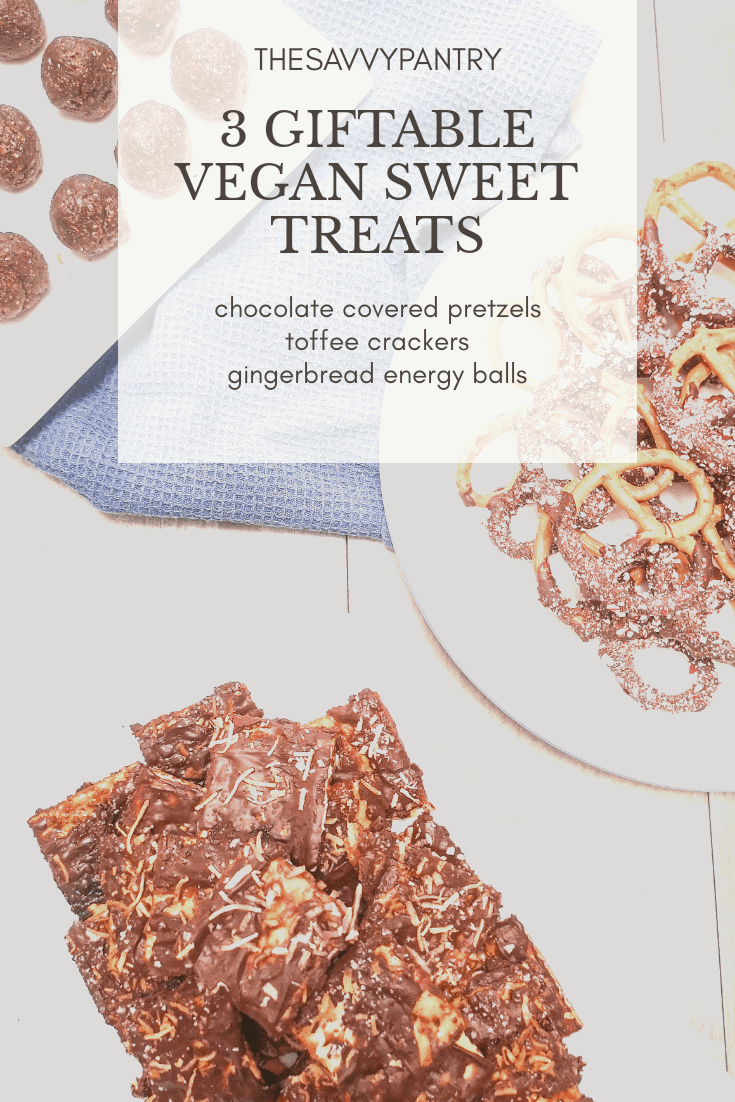 We’ve made it through a month of vegan holiday recipes! With this final video, I wanted to share recipes that had a dual function: dessert and a gift. These are so addicting because of their sweet and salty quality, so be sure to make a big batch to giveaway and the snack on at home!
