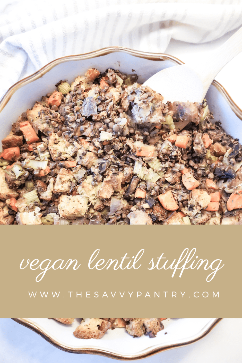 It is Easter weekend. Though we may be social distancing, self-isolating and not seeing our families this weekend, this doesn’t mean that you can’t celebrate within your own household! Stuffing is the dish that I usually make for all of my family’s holiday parties, and this weekend I still plan on making it even though it’s just going to be me and my husband. What I love about stuffing is though it is only eaten during the holidays, it can actually be enjoyed all year round. The way I make my stuffing can be a meal in itself, packed full of protein, vegetables and flavour. This recipe uses lentils however it would be tasty with smoked tempeh as well. Serve with your choice of vegan gravy.