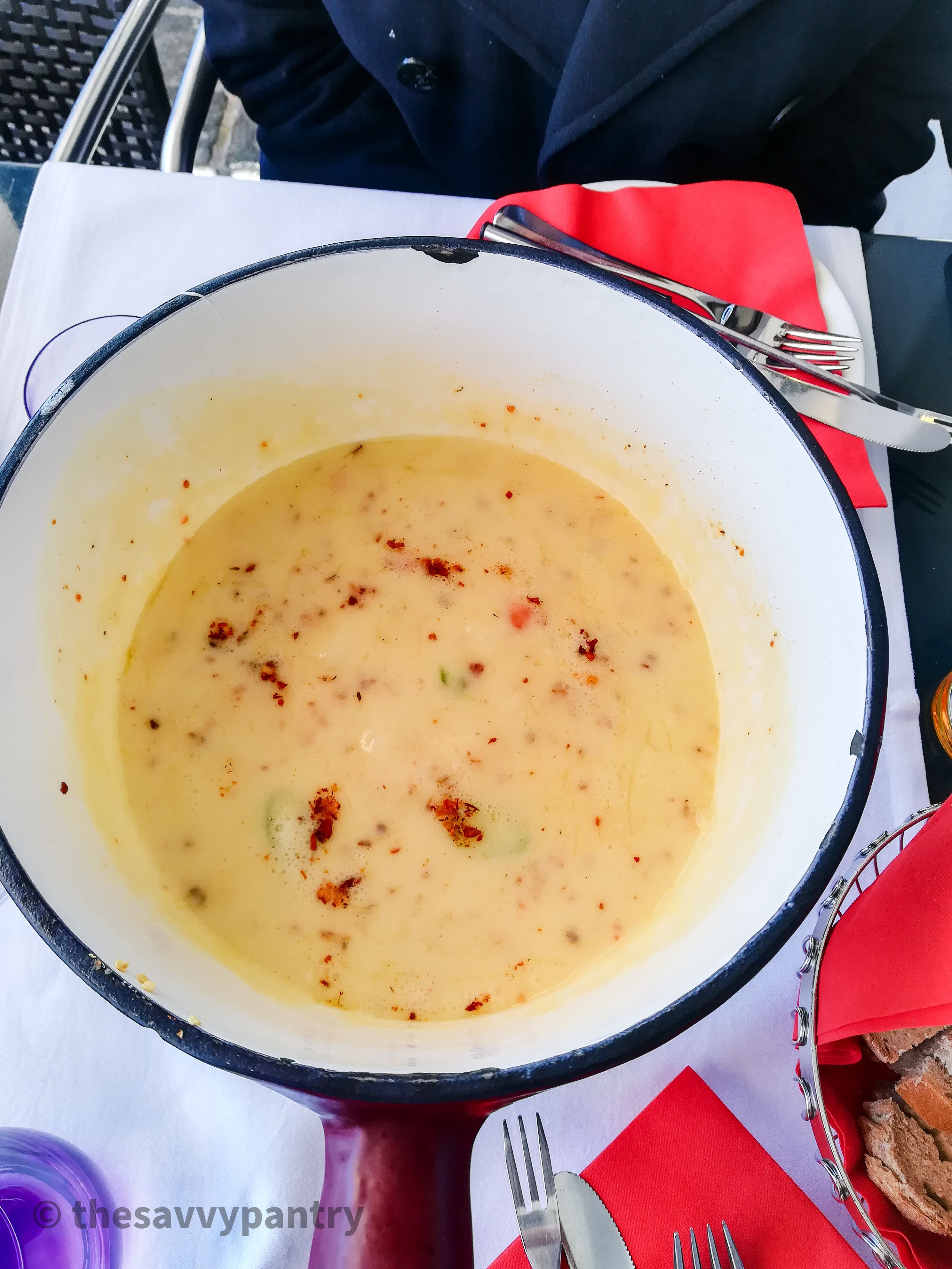 Once we reached the other side of the bridge and entered Old Town, we walked along the water to see where we could grab some lunch. We ended up at the restaurant attached to Hotel des Alpes where we enjoyed traditional cheese fondue and rosti.