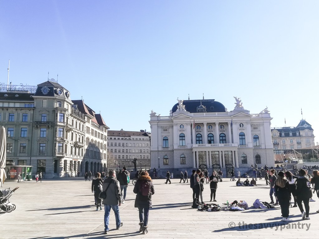 We headed over to the Opera House where there were lots of people hanging out and enjoying the company. There were lots of people having picnics, playing music or taking a stroll with their babies. It was a quick visit for us at the Opera House before we headed back to the train station to end our day trip in Zurich.