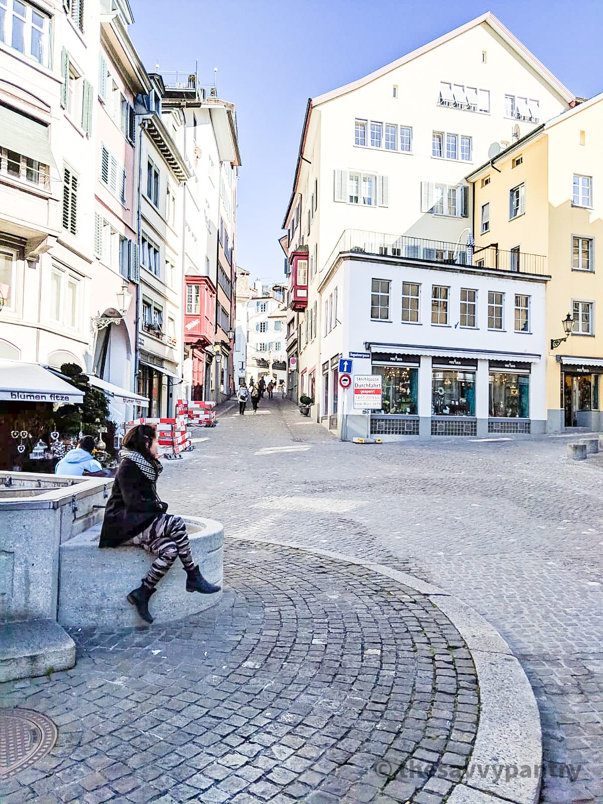 After lunch, we officially started our walking tour and headed towards Augustinergrasse, known for their beautifully painted bay windows. This is definitely an area you must visit for all of those Instagram worthy photos. We took our time walking this area, looking at all of the shops and taking photos of the colorful buildings. This street connects directly to Bahnhofstrasse, which is a great area for high end shopping. We loved window shopping here and feeling like a local as we explored the streets. From here, we walked over to Lindenhof, which is a great lookout onto the city.