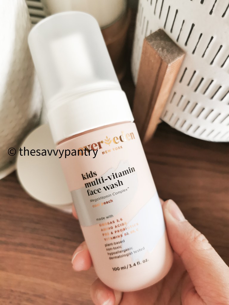 Ever since the summer started, I noticed that my toddler has had a lot of acne, especially on his face. Since we’ve been playing outside a lot this summer, with a combination of sweat, sunscreen and dirt, it’s caused a few blemishes on his face. To alleviate these acne breakouts, I wanted to find a kid friendly face wash and face cream that was effective but also safe to use on him. Since I don’t use much product on him in general, I wanted to keep his skincare routine to a minimal. I am glad to have found Evereden’s Multi-Vitamin Face Was and Multi-Vitamin Face cream!